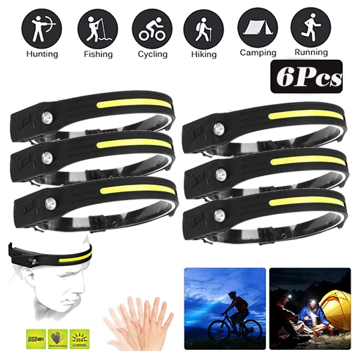 Светодиодный налобный фонарь со встроенным аккумулятором, водонепроницаемый Головной фонарь с датчиком для бега, рыбалки, кемпинга, зарядка через USB, 1-10 шт.