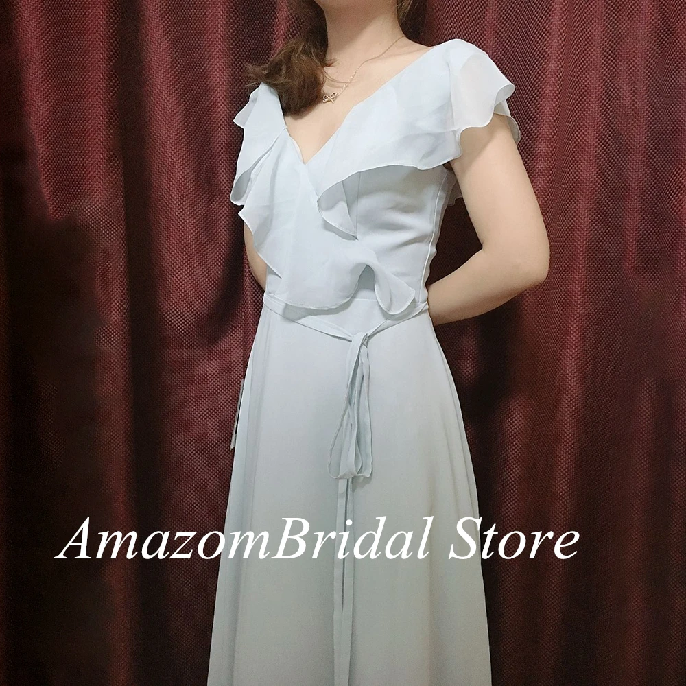 Простое шифоновое платье подружки невесты с V-образным вырезом, открытой спиной и без рукавов, а-силуэт, свадебное вечернее коктейльное платье, женское свадебное платье
