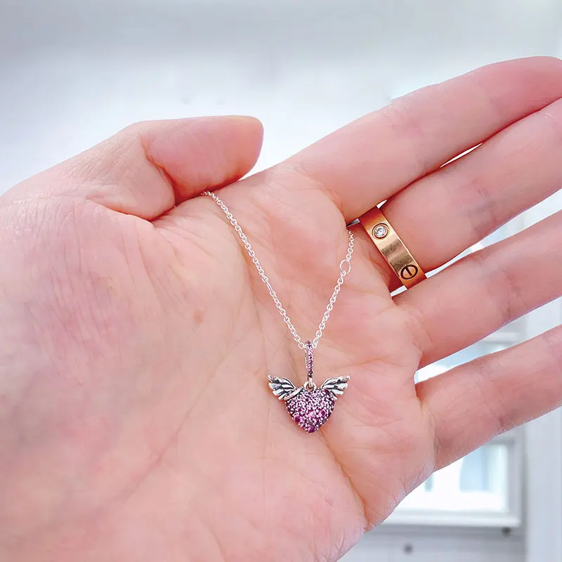 Ожерелье женское из серебра 925 пробы с розовым паве сердца и крыльев Ангела