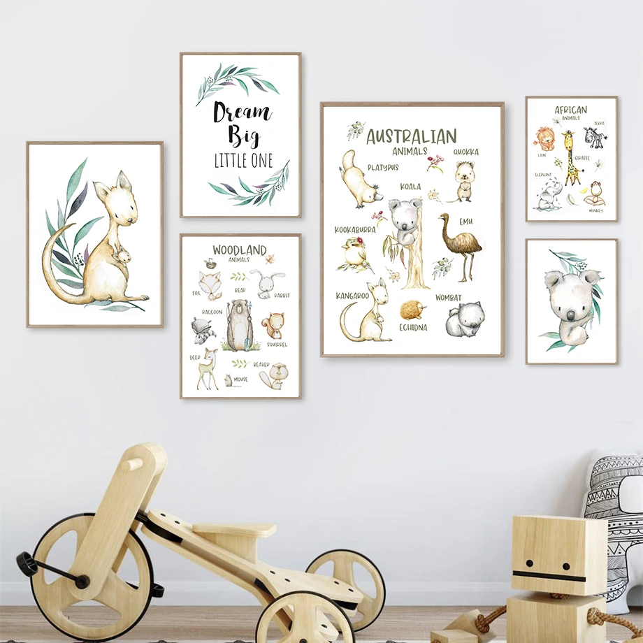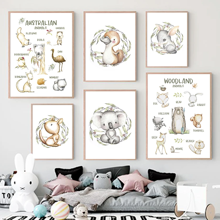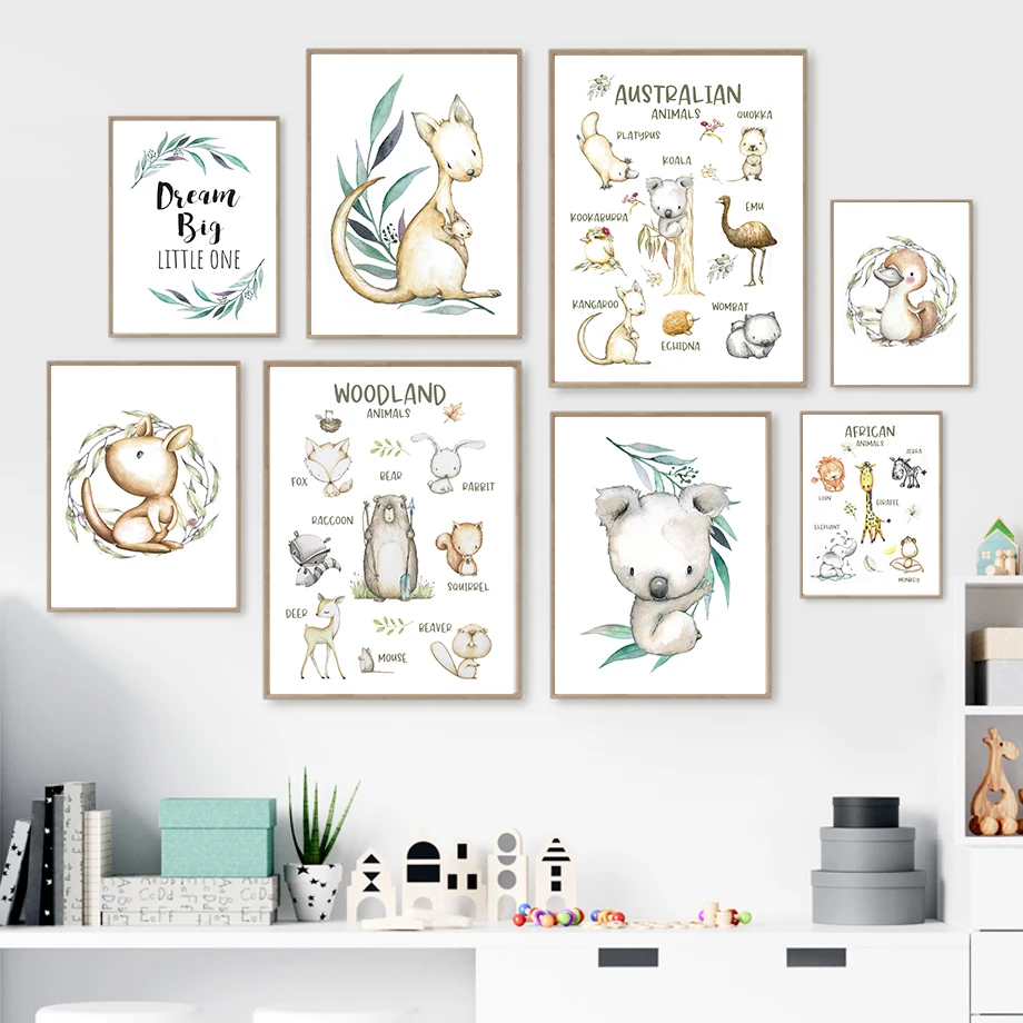Настенная картина с изображением коала, утки, кенгуру, Льва, жирафа, обезьяны, животных, постеры и принты на холсте в скандинавском стиле, настенные картины, декор для детской комнаты