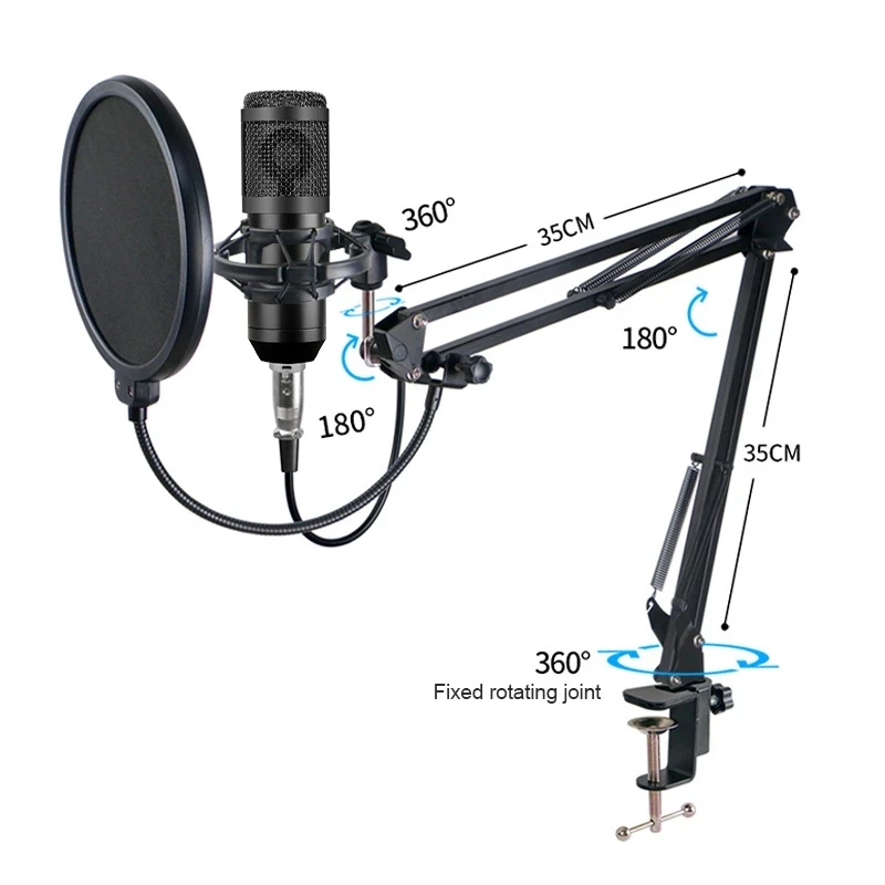 Караоке-микрофон BM800, Студийный конденсаторный Регулируемый подвесной ножничный рычаг, металлический амортизирующий поп-фильтр для студийной записи
