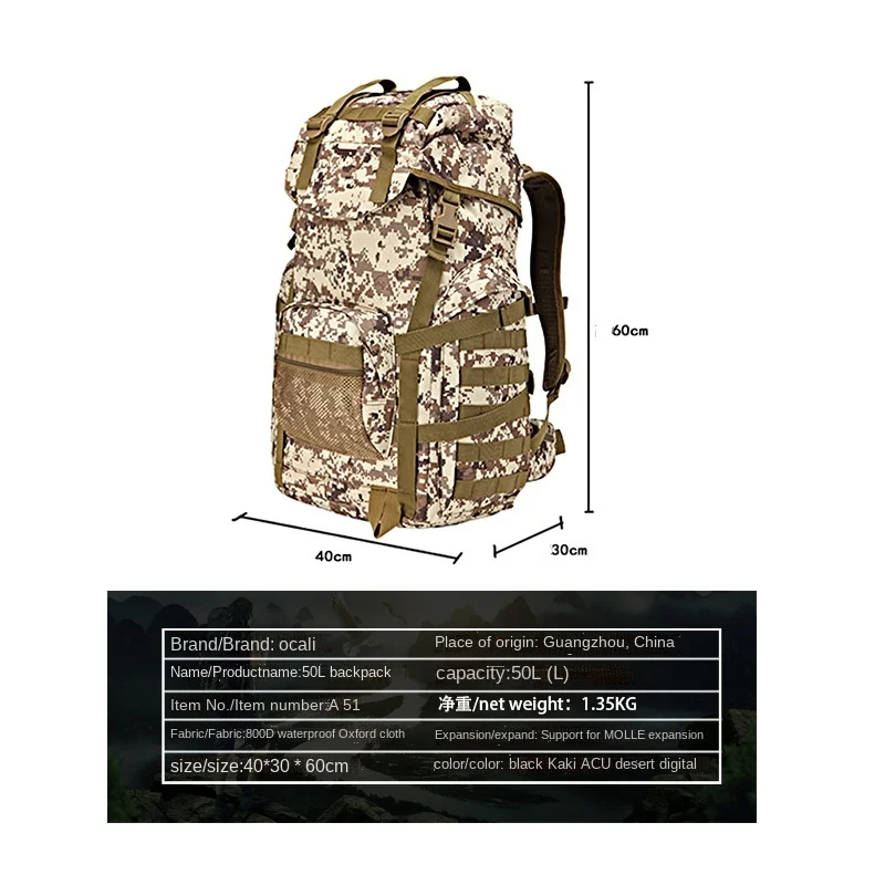 Водонепроницаемый рюкзак для поездок на открытом воздухе, 50 л