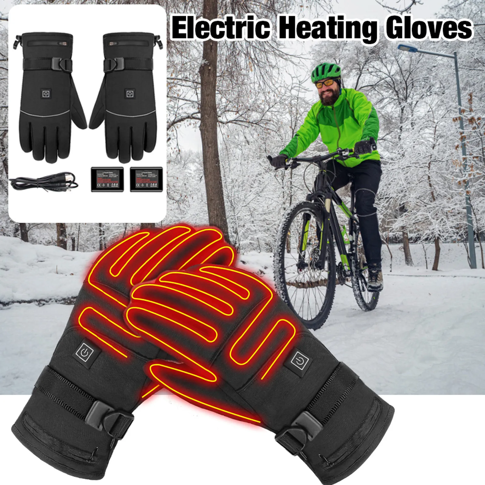 Уличные лыжные перчатки с подогревом, 3,7 в, перезаряжаемая батарея...