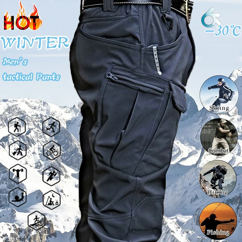 Мужские зимние брюки, плотные теплые тактические брюки, повседневные флисовые брюки с несколькими карманами, свободные брюки-карго, брюки для походов, треккинга, бега