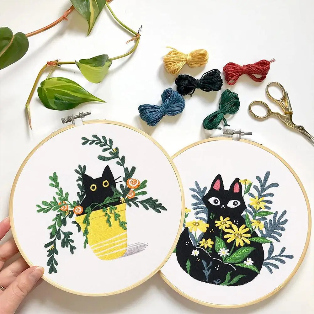 Набор для вышивания с изображением черной кошки и растения, посылка см