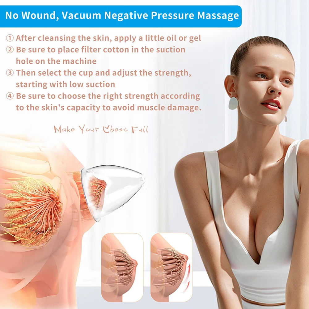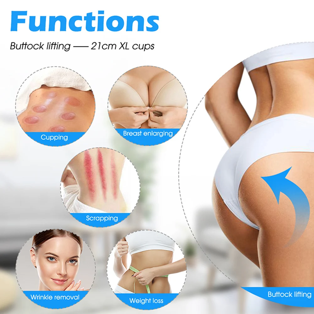 Это косметическое устройство используется для развития груди, лифтинга и укрепления кожи, массажа, формирования тела и похудения, купирования и Gua Sha.
