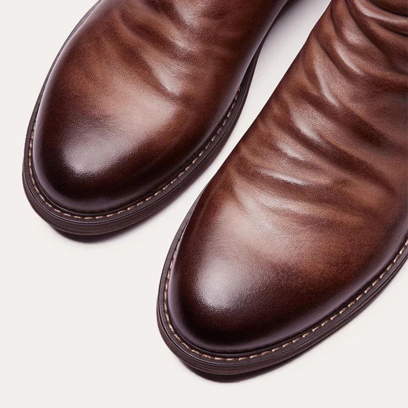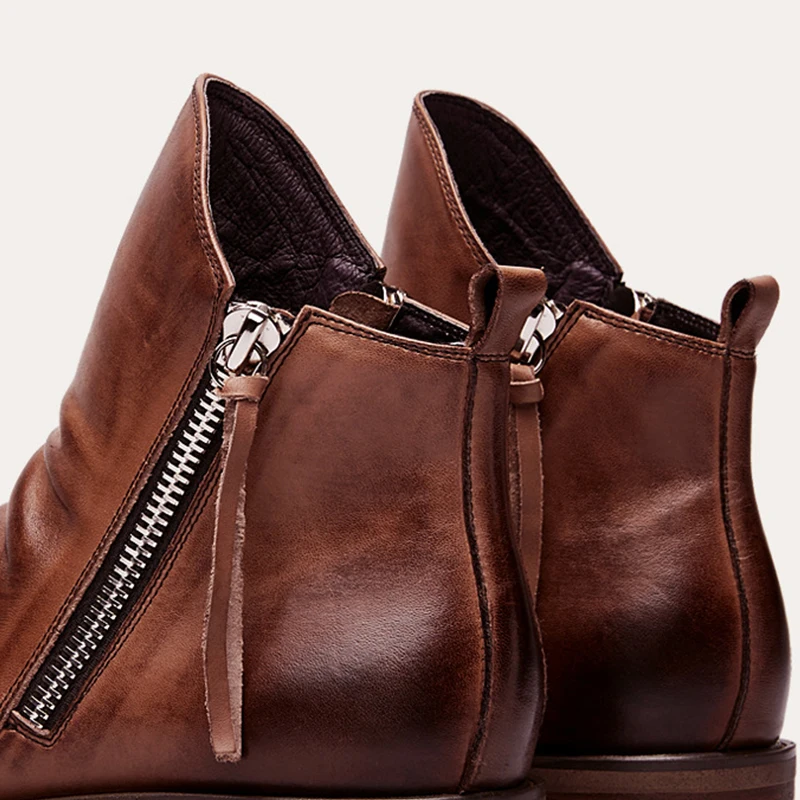 Кожаные мужские ботинки, Новая двухсторонняя молния, нескользящая п...