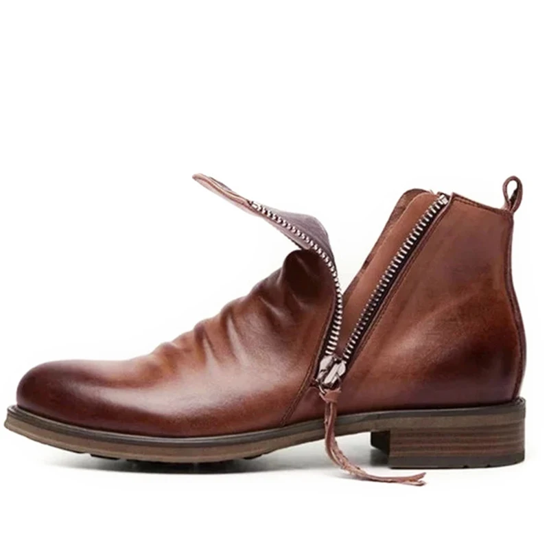Ботинки Челси мужские кожаные, двухсторонняя молния, Нескользящие, бахрома, модная обувь, большие размеры
