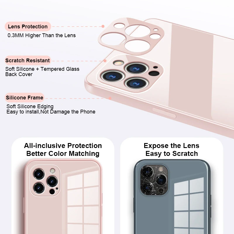 FeaturesTempered Glass Back Cover Silicone Frame Phone Case