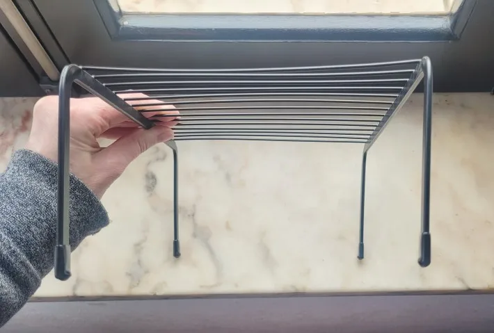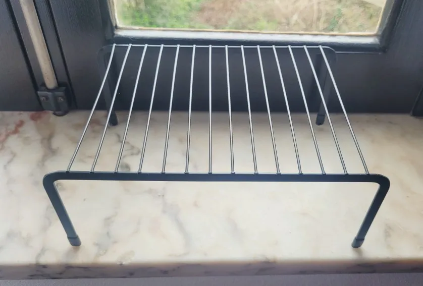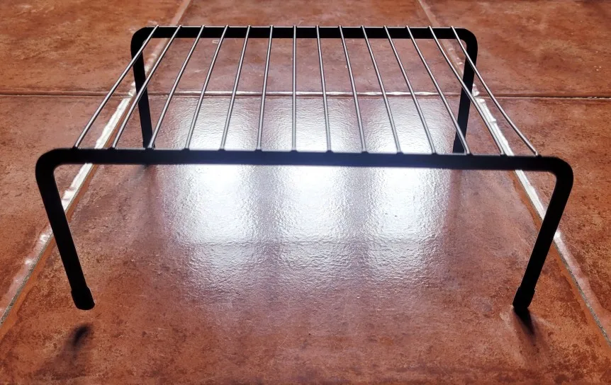 Это металлическая полка меньшего размера, 17,5x25x10 см. Они также доступны в белом цвете. У них есть пластиковые наконечники на ногах, чтобы они не двигались. Он может держать приличное количество веса, но, возможно, не огромное количество тяжелых пластин без сгибания, хотя я не пробовал. Я использовал меня в ванной для больших бутылок шампуня, кондиционера, мытья тела и других продуктов для ванны. Он был отправлен хорошо обернутым в много пены и пластиковой упаковки, но в мешке вместо коробки, так что я должен был переделать его просто немного. Размеры точные, и продавец быстро ответил на мой вопрос. Большое спасибо; Я рекомендую это!