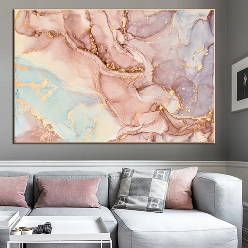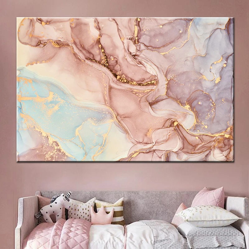 Абстрактная Картина на холсте, искусство, розовый мрамор, золотая фольга, настенный плакат и принты, Современная Скандинавская гостиная, домашний декор, картина