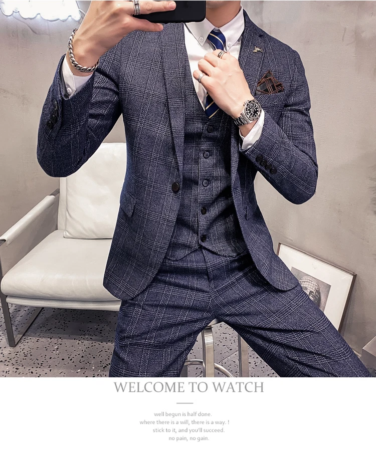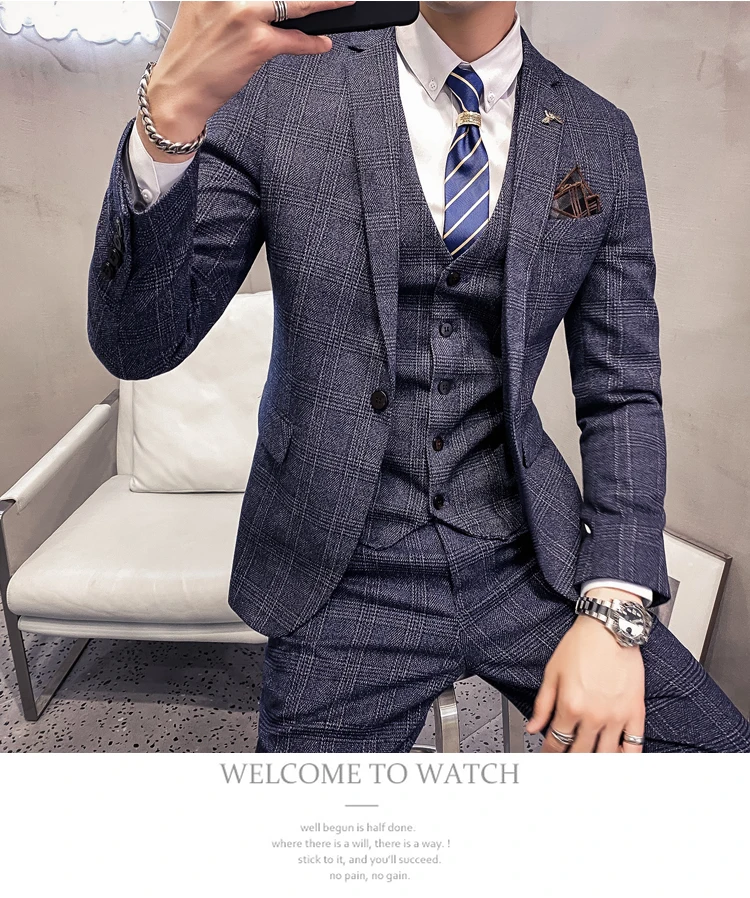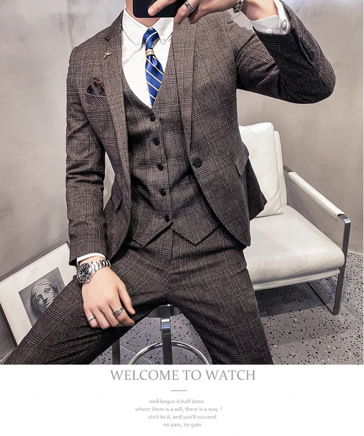 (Пиджак + жилет + брюки) мужское свадебное платье для жениха клетча...
