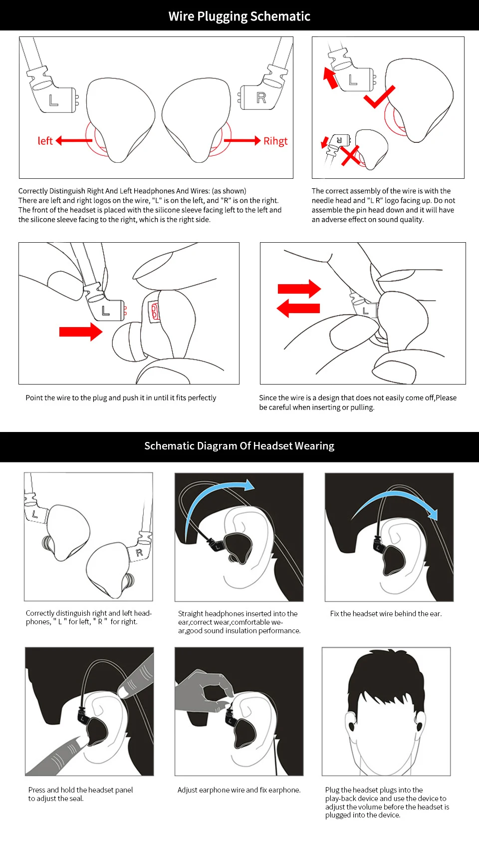 Анти-тянуть, анти-изгиб, анти-коррозии обеспечивает отличный звук, качество передачи сигналаНезависимый патентованный силиконовый рукавЭто более удобно, чтобы соответствовать человеческой ушной раковине и передает звук непосредственно к барабанной перепонке, тем самым получая хорошее качество звука