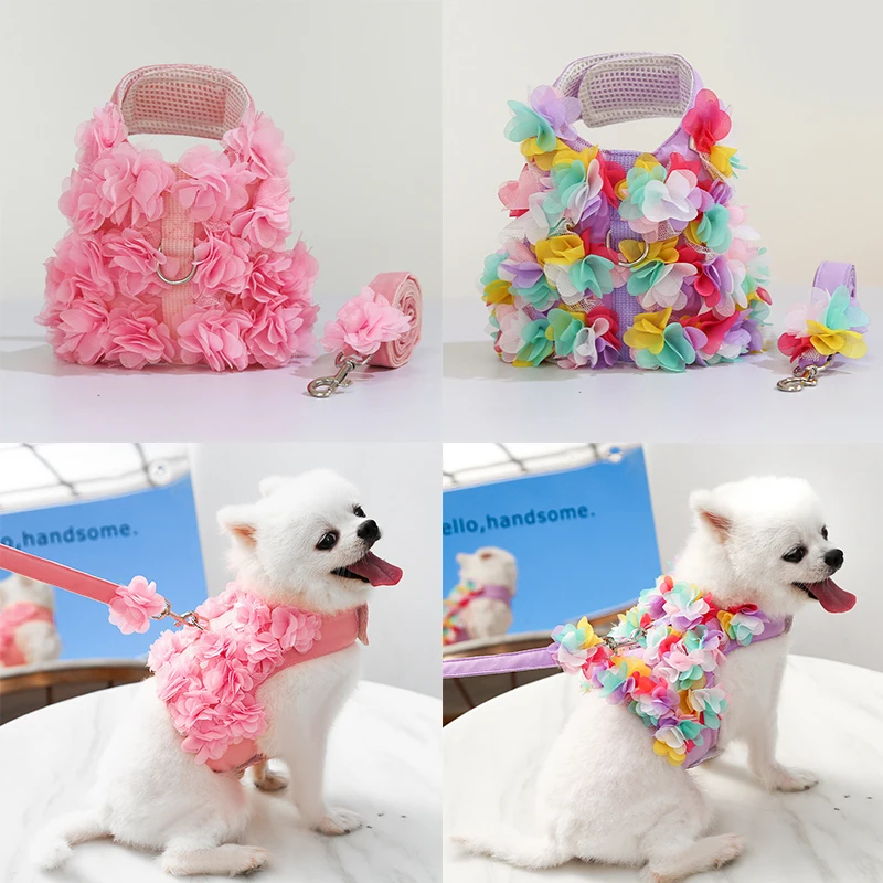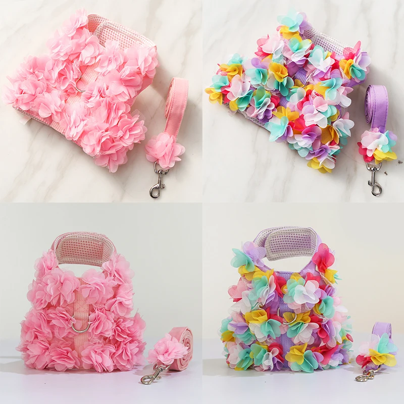 Поводок для собак, воздухопроницаемая шлейка с цветами, для домашних животных, кошек и собак, жилет для щенков, регулируемый поводок для чихуахуа, йоркширского терьера