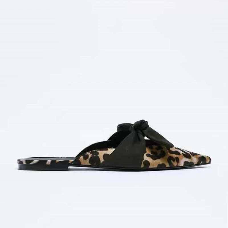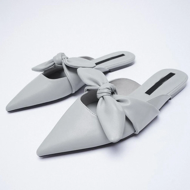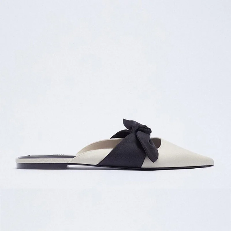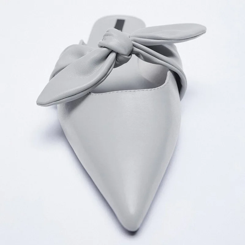 Женские туфли без задника с бантом, заостренным носком, на плоской подошве