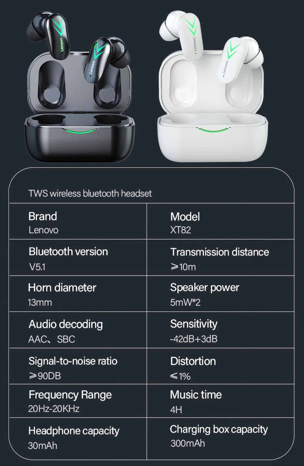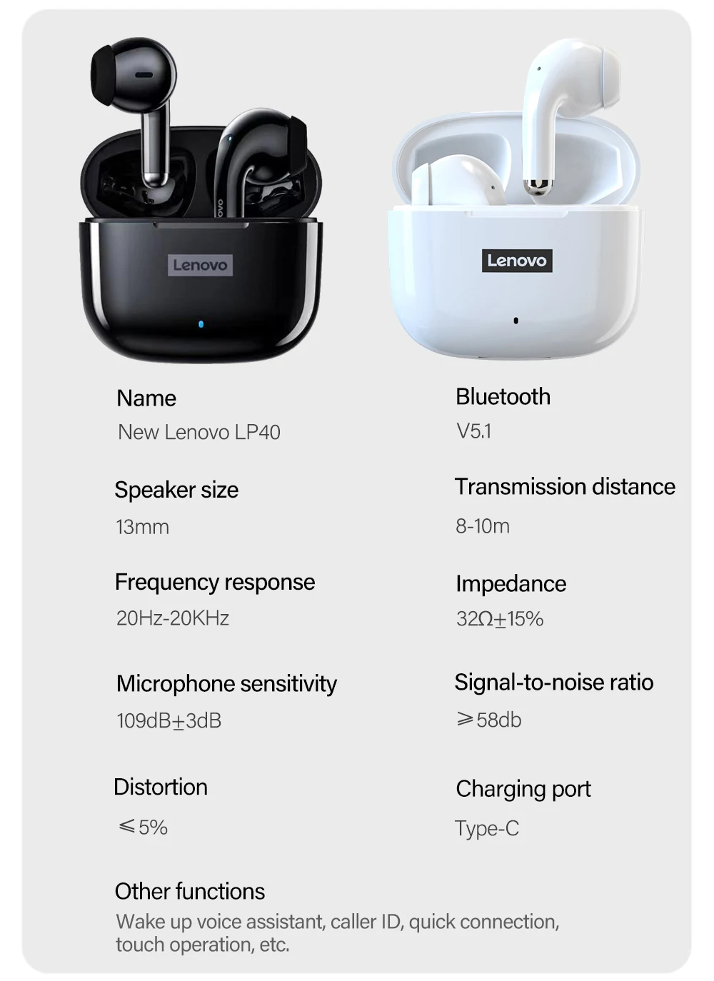 Номер моделиLenovo Wireless Earphone BT5.1 Headphone Bass Earbuds Universal Mini