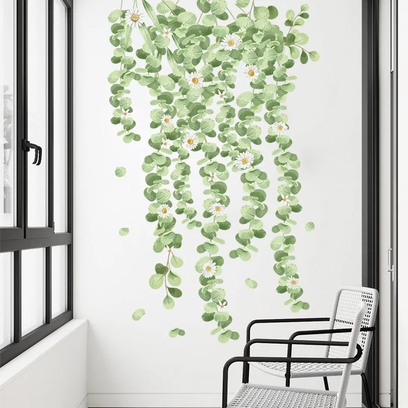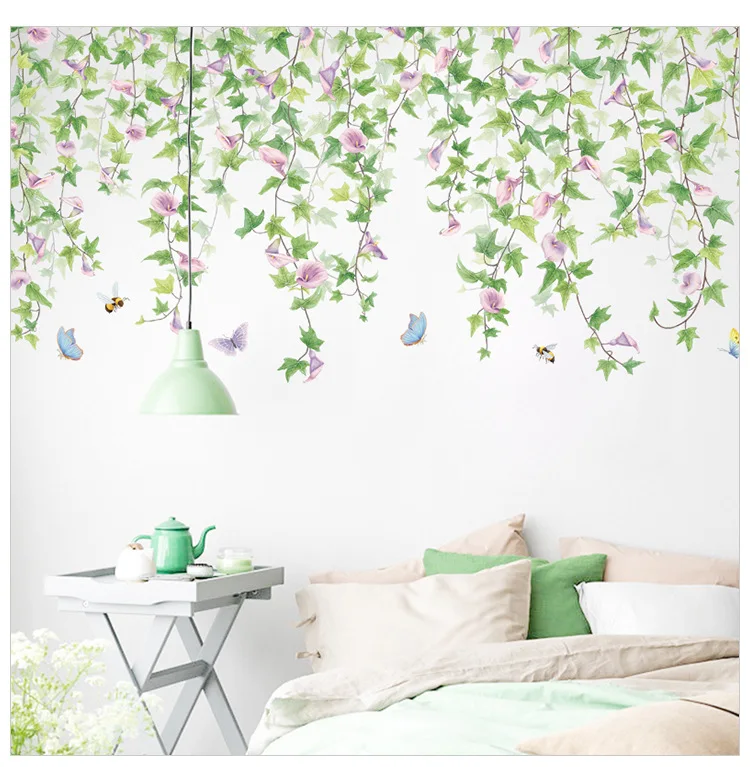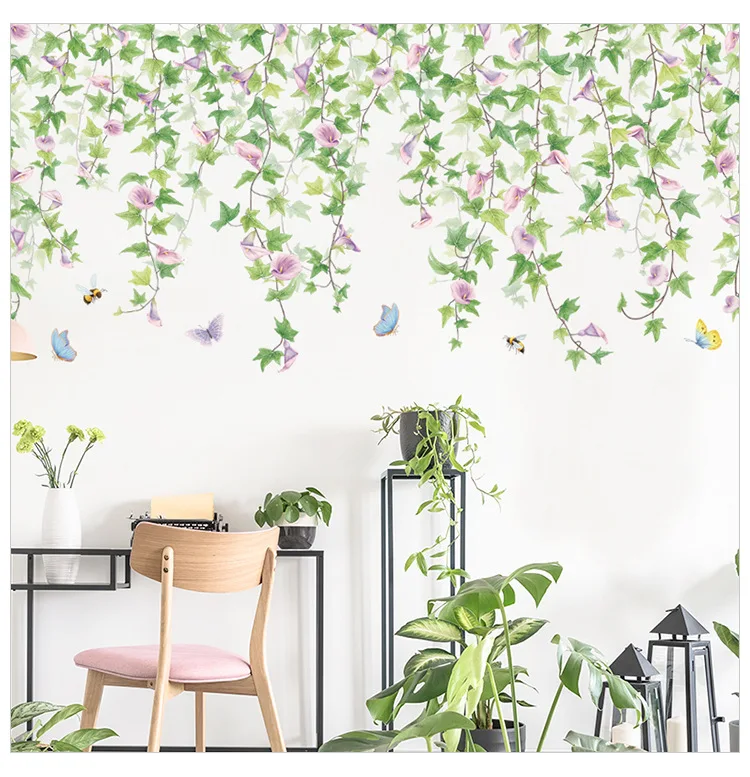 Съемные настенные наклейки с виноградной лозой с зелеными листьями ...