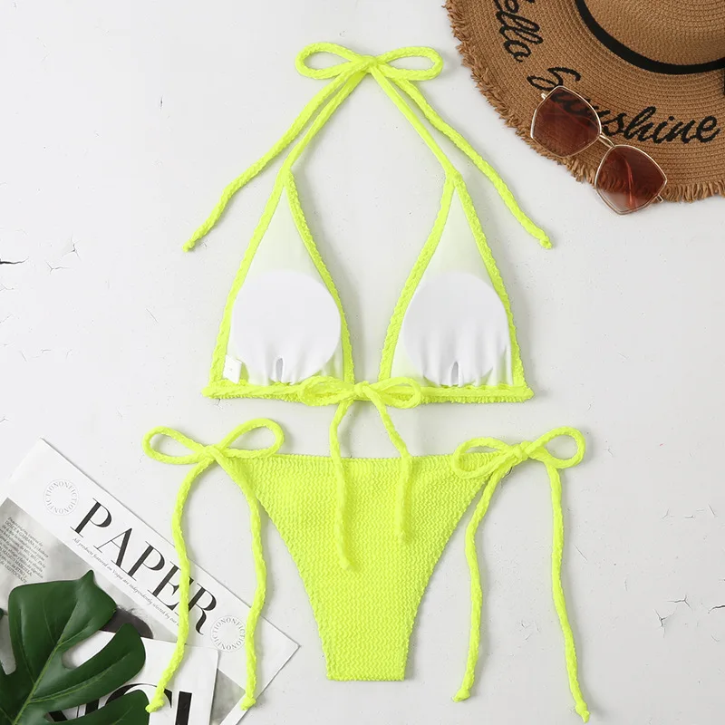 Сексуальный треугольный комплект бикини 2022, Женский однотонный ре...