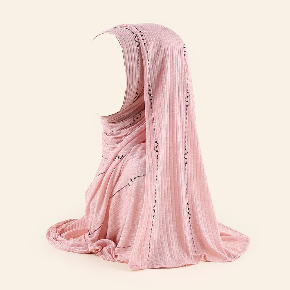Хлопковый хиджаб с Стразы Рамадан хиджаб для мусульманских женщин д...