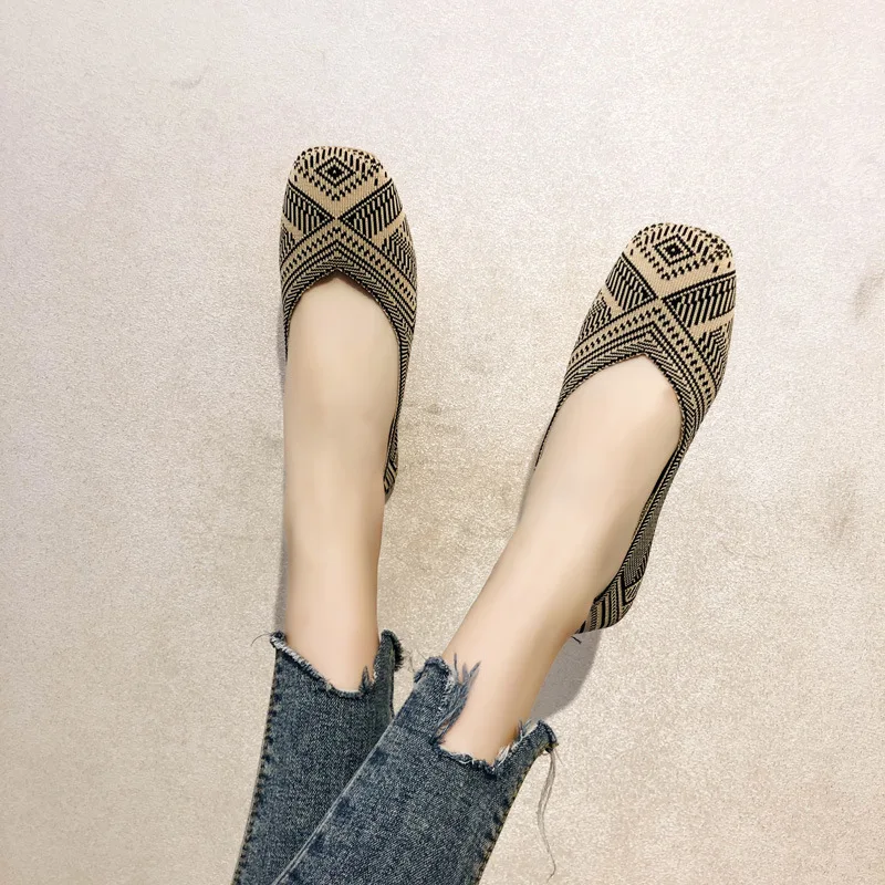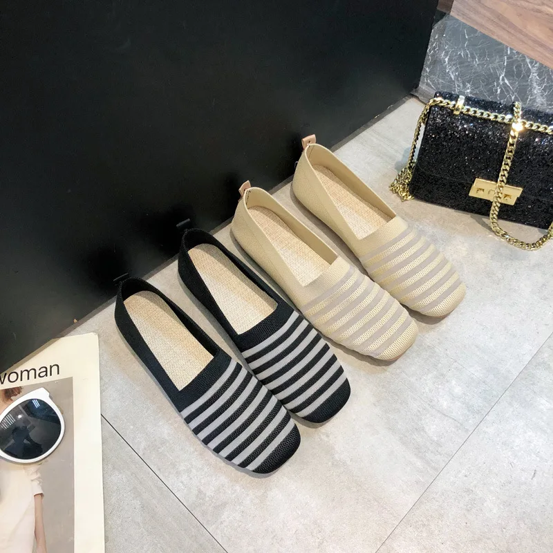 Дышащие легкие балетки на плоской подошве, Женская Весенняя обувь с квадратным носком, вязаная ткань, женские повседневные лоферы, кроссовки на плоской подошве