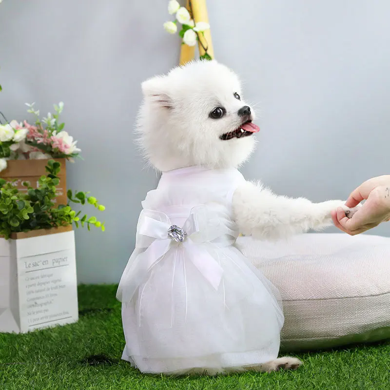 Однотонное белое розовое платье для девочек, кошек, маленькая собака, дизайнерская вечерние для собаки, юбка с вуалью, платье принцессы для питомца, официальное платье, Прямая поставка