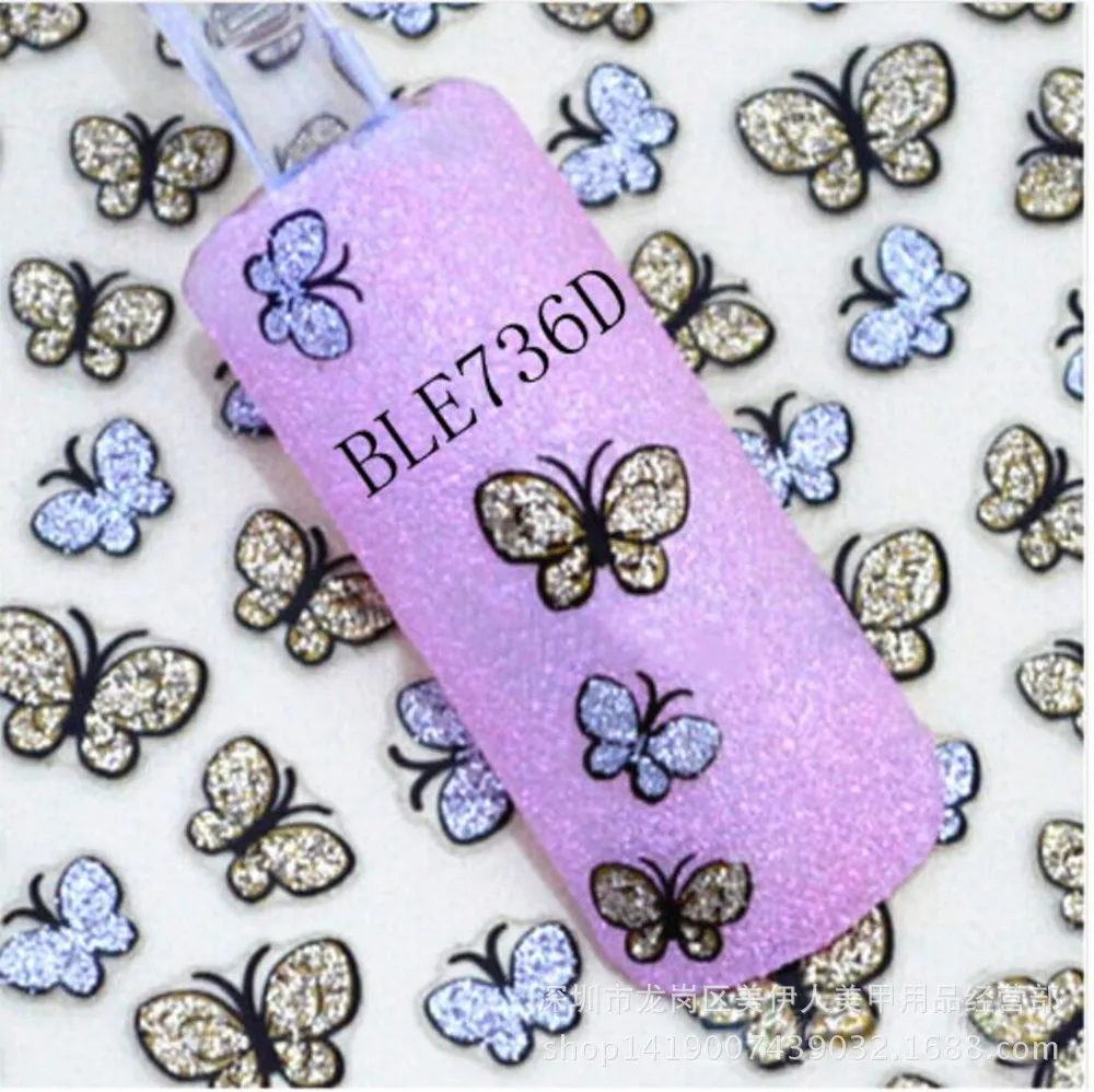 1 лист 3D лазерная фотография, звезды, Бабочка, Самоклеящиеся украшения для ногтевого дизайна, блестящие наклейки для ногтей с эффектом