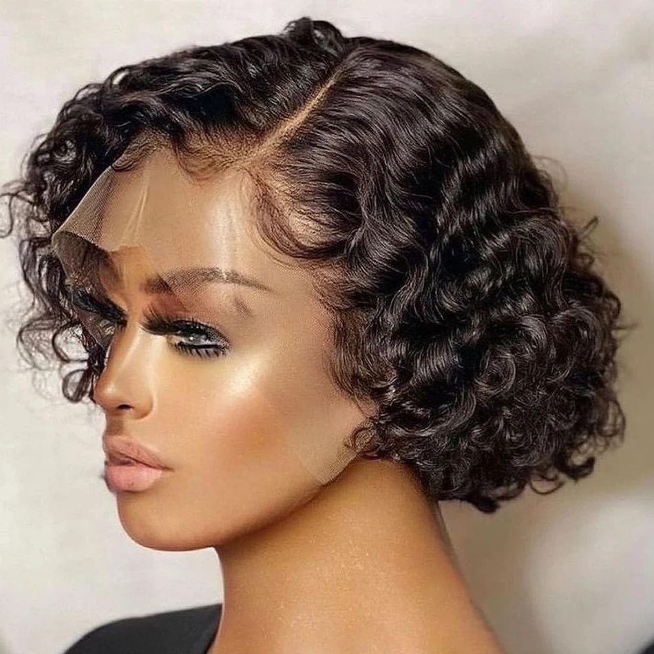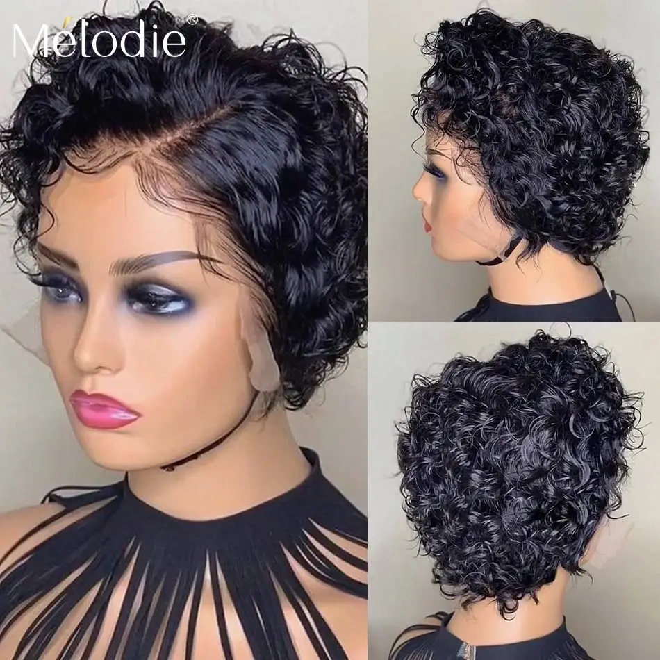Короткий кудрявый прозрачный парик Melodie 13x2 T часть кружева глубокая волна боб парик предварительно выщипанные волосы Remy для черных женщин