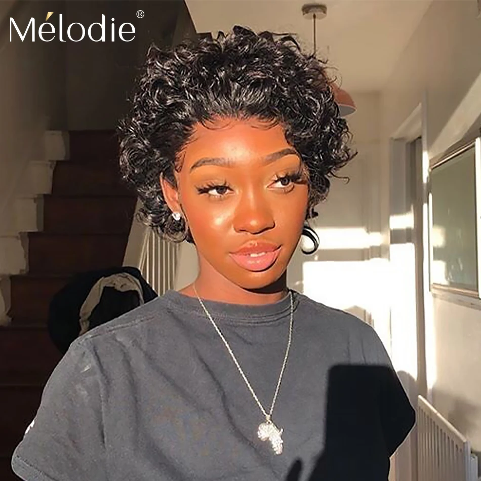 Luvin Pixie Cut парик Короткие вьющиеся человеческие волосы парики ...