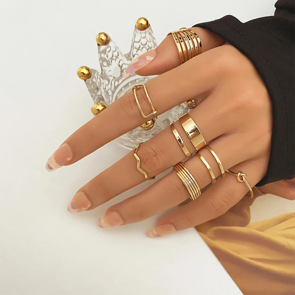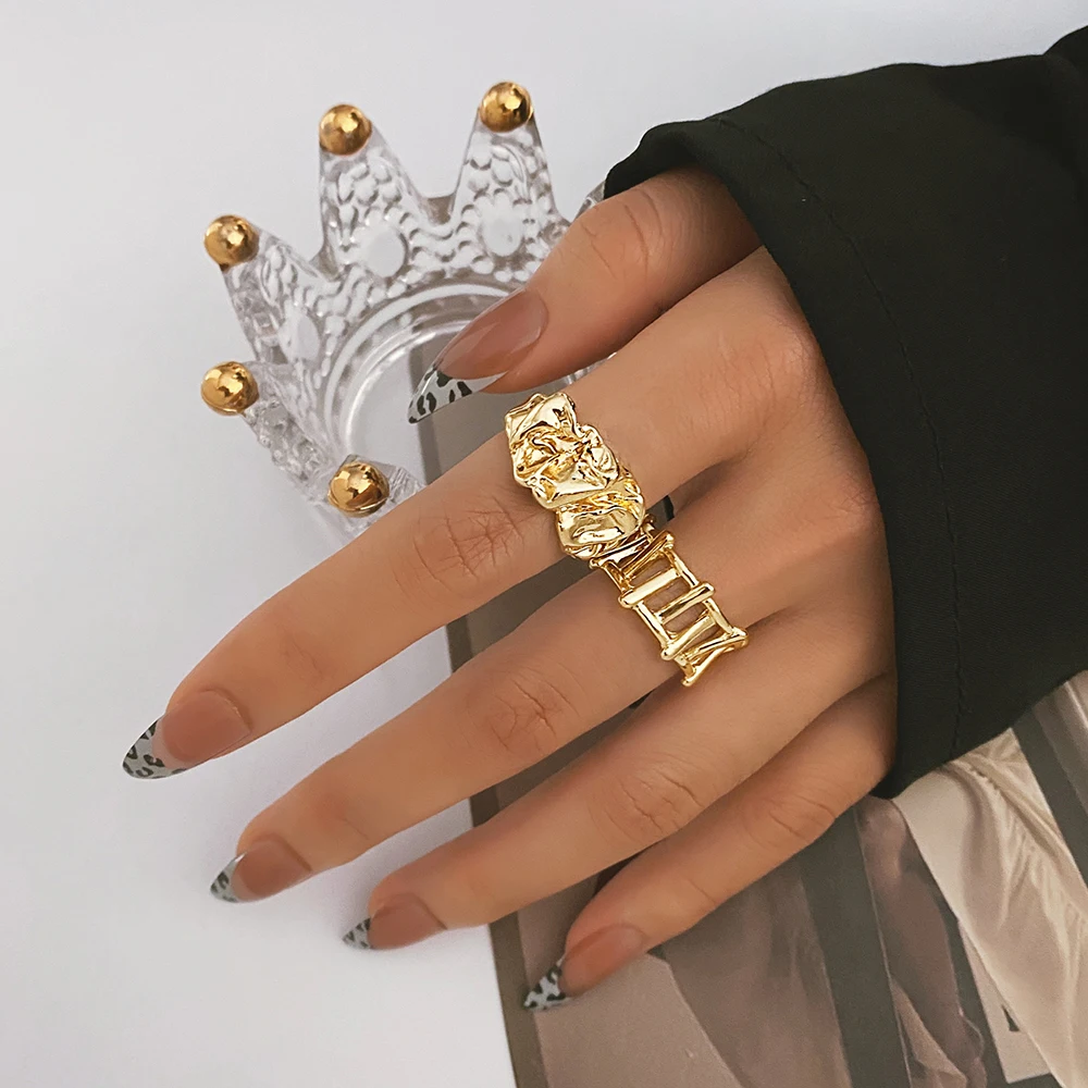 KISSWIFE панк новый золотой цвет металлические кольца набор для женщин простой дизайн кольца 2022 тренд свадебные модные украшения