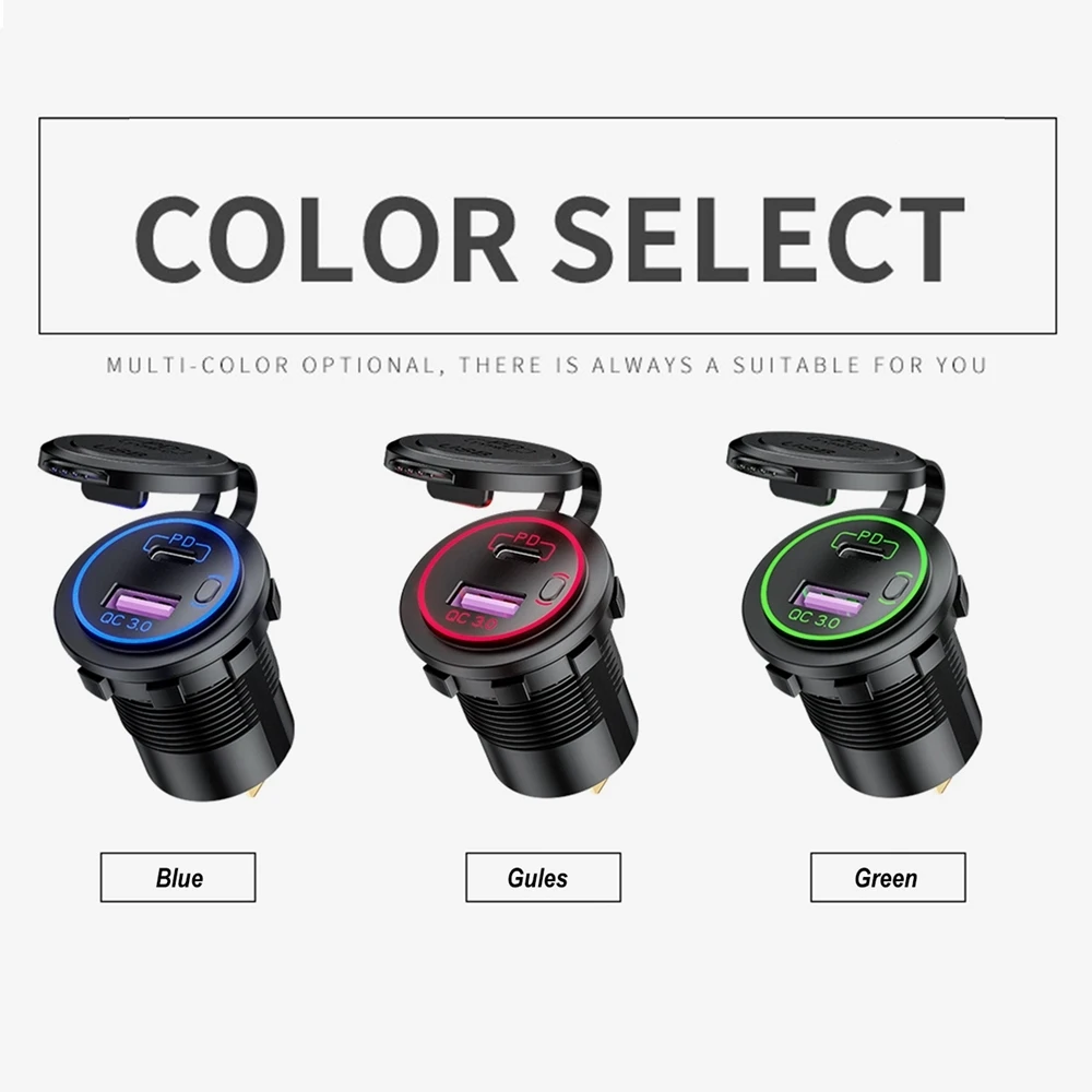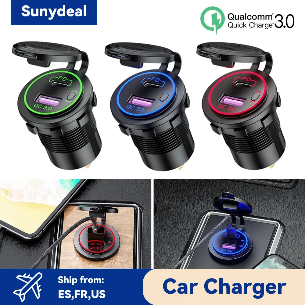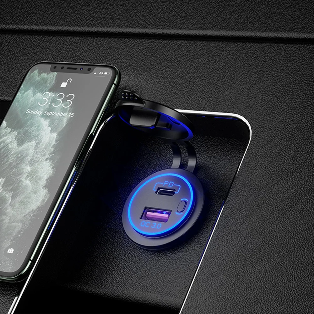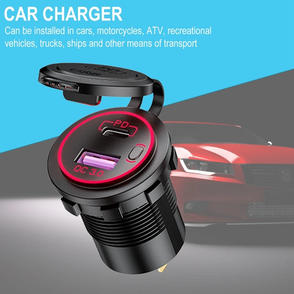 Автомобильное зарядное устройство USB Type C PD, адаптер для быстрой зарядки телефона, водонепроницаемый 12 В 24 В для грузовиков, мотоциклов, лодок, внедорожников, квадроциклов, сотовых телефонов
