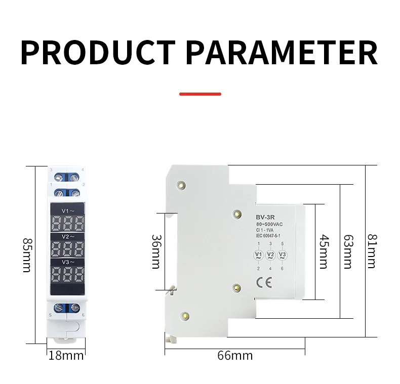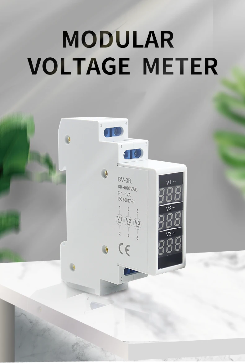 Модульный измеритель напряжения 3PH 80-500VAC Din Rail с цифровым мини-дисплеем