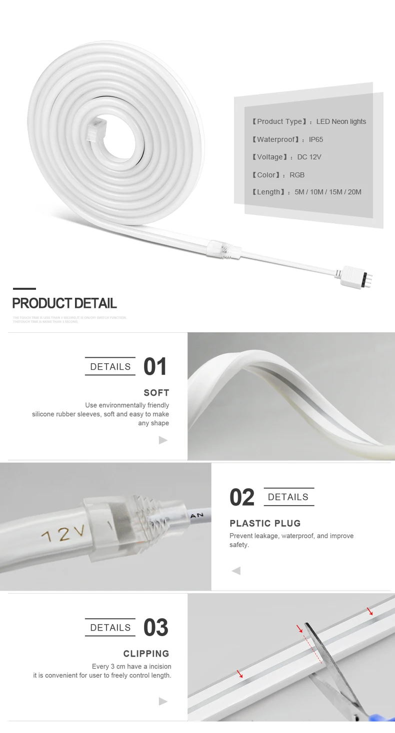 Тип: гибкий светодиодный неоновый светильник RGBНапряжение: DC12VВодонепроницаемость: ДаШирина полосок: 6 мм * 15 ммСветодиодный Тип: SMD 3535Длина ленты: 1 м/2 м/3 м/4 м/5 мСветильник Цвет: разноцветный "Красный-зелёный-желтыйУправление: Buletooth Control или Tuya Wifi ControlПульт дистанционного управления: CR2025 (без батареи)