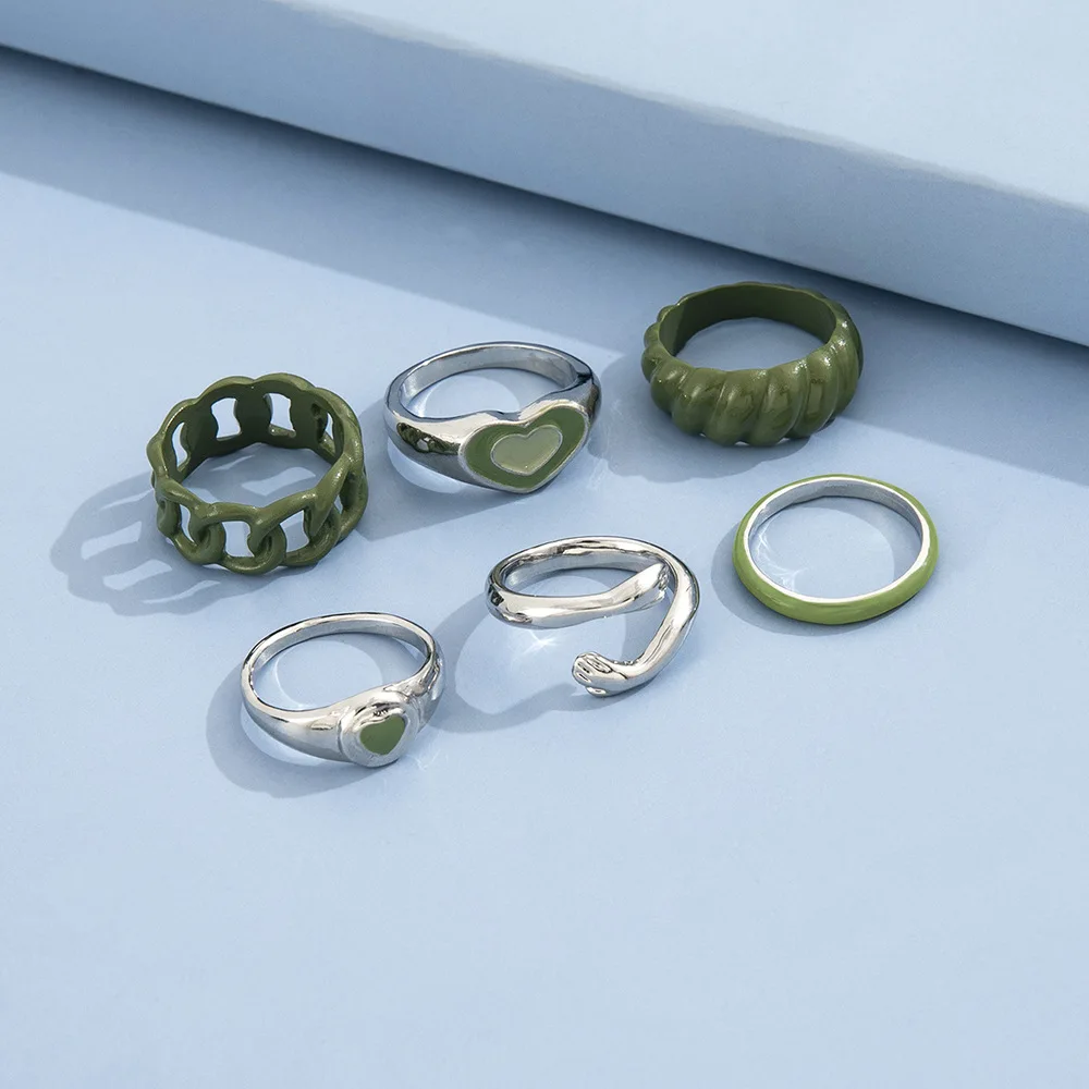 Набор Колец Y2K в Корейском стиле с зеленым покрытием из смолы для женщин, модные разноцветные Многослойные кольца в форме сердца, оптовая продажа ювелирных изделий