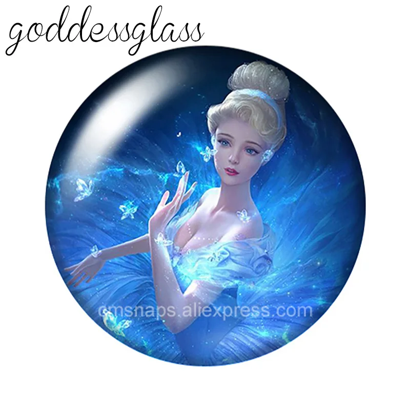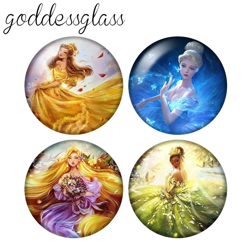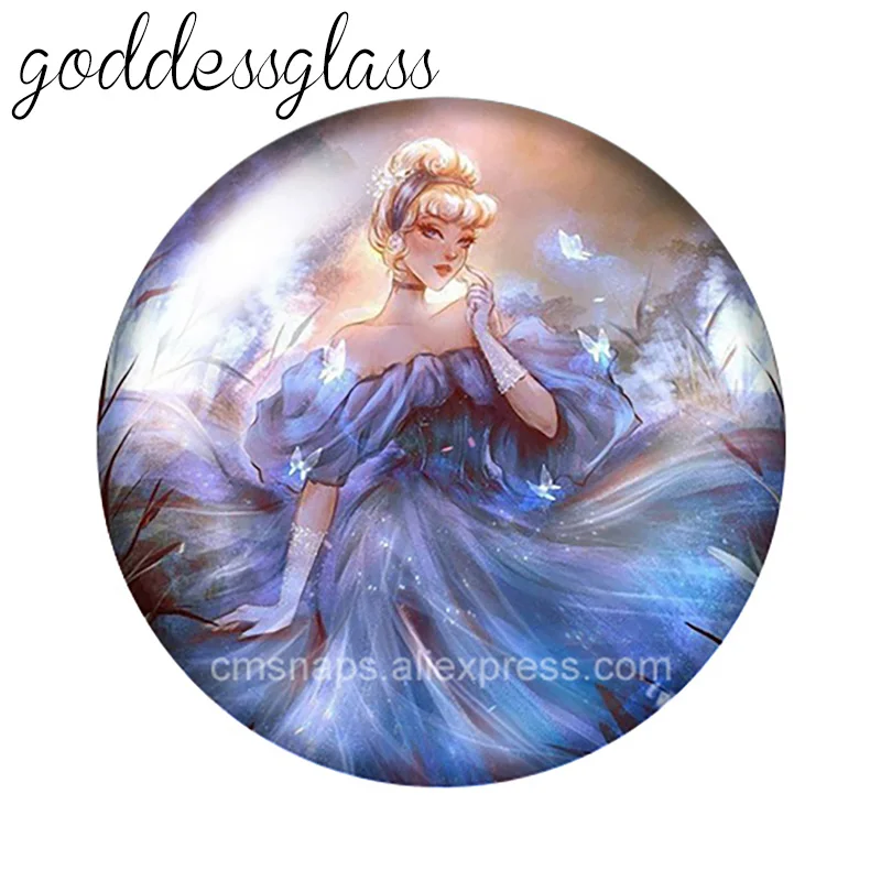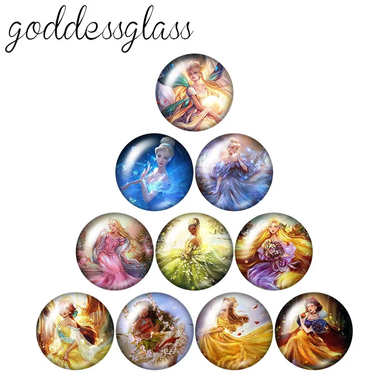 Эльза диснеевских принцесс, Белль Тиана Алиса, 10 шт., 12 мм18 мм20 мм25 мм, круглая стеклянная фурнитура для изготовления ожерелья с плоской задней стороной