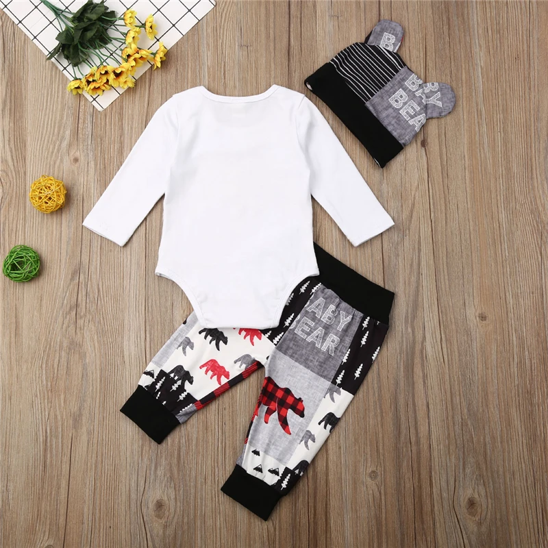 3 шт., детский комплект одежды для новорожденных, с принтом медведя