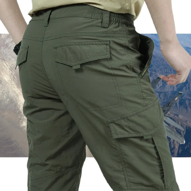 Брюки-карго мужские тактические, тонкие дышащие длинные брюки в стиле милитари, повседневные армейские брюки Slim, водонепроницаемые быстросохнущие, с карманами, лето