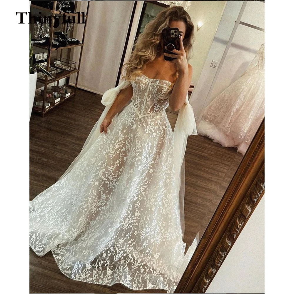 Thinyfull модное кружевное свадебное платье-трапеция на тонких бретельках 2022 в стиле бохо, свадебные платья принцессы для невесты, платья для вечеринки