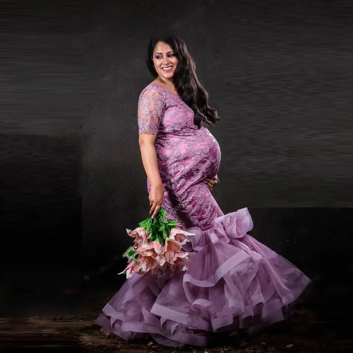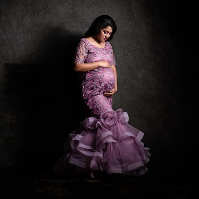 Фотография лиловый Тюль Вечерние платья с рукавом платья для беременных аппликация для женщин платье для беременных для детских фотосессии