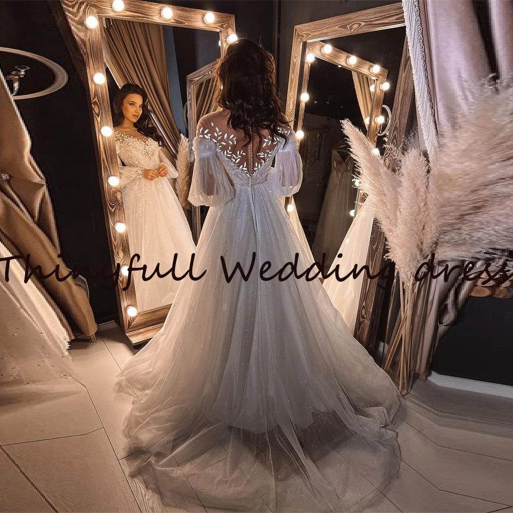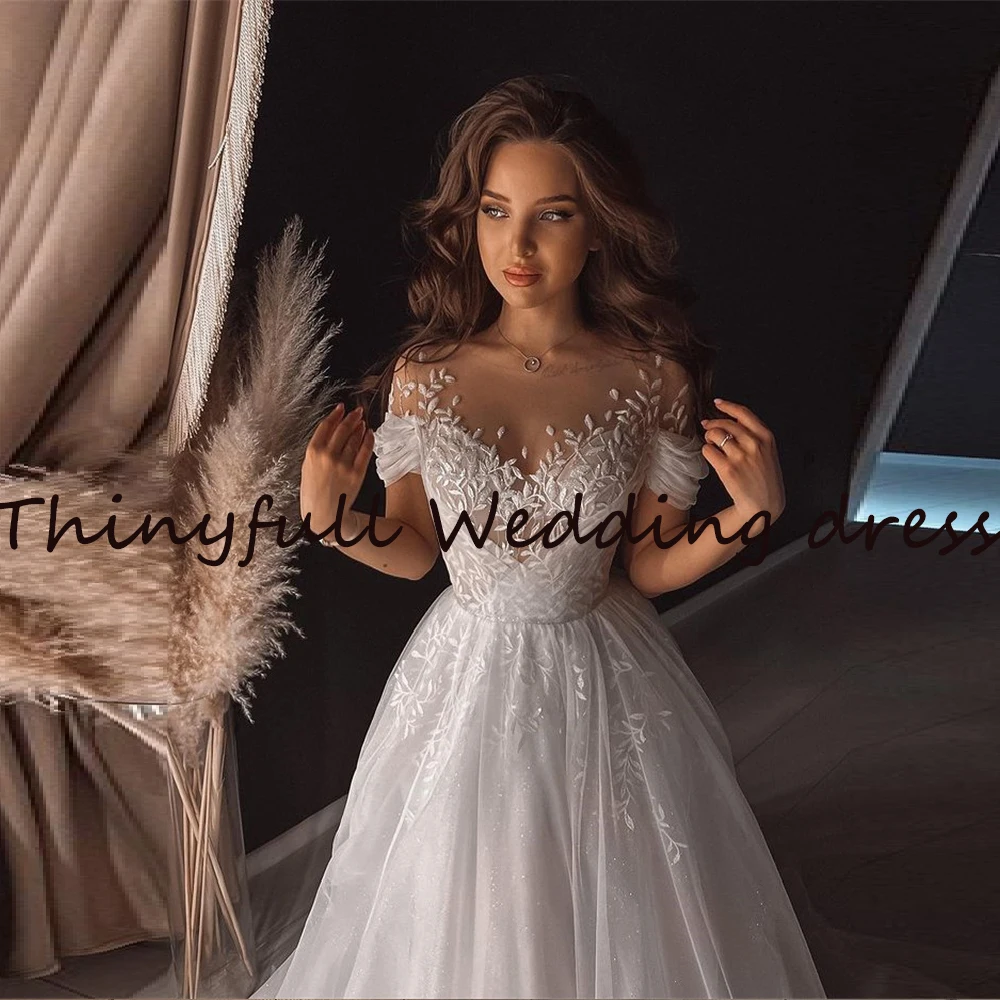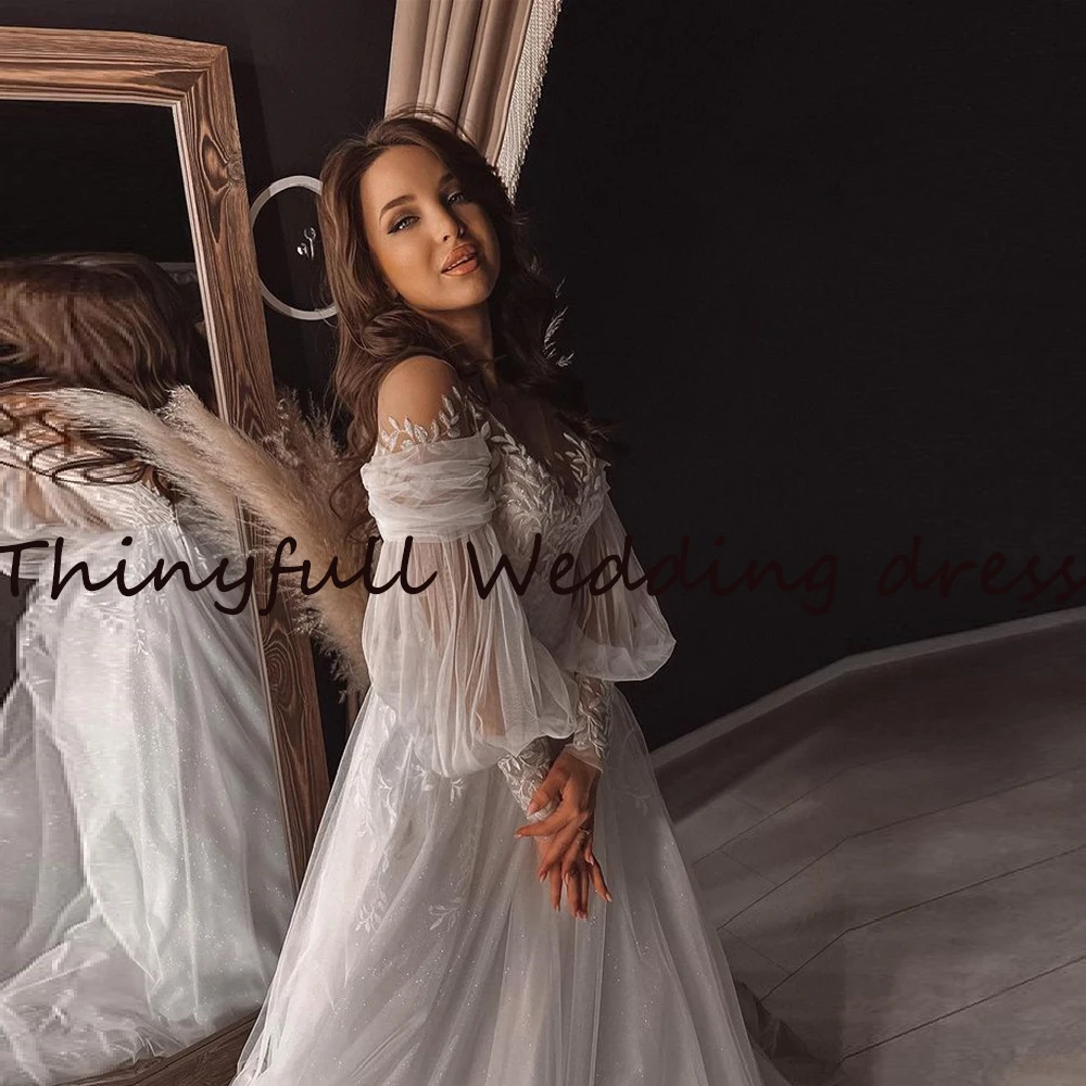 Блестящее длинное ТРАПЕЦИЕВИДНОЕ свадебное платье Thinyfull, кружевное Цветочное платье с открытыми плечами, модель 2022, свадебные платья для невесты
