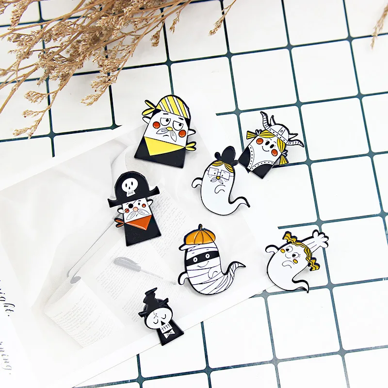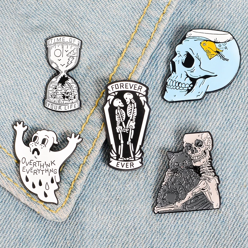 Новинка, эмалированная брошь в стиле панк с рисунком, песочные часы, призрак, скелет, украшения для Хэллоуина, значок на лацкан для джентльмена, кинжала, робота