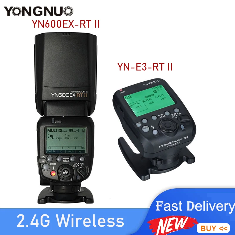 В беспроводной радиопередающей вспышке, сотрудничайте с YN600EX-RT(II), Canon 600EX(II-RT/430EXIII, один YN600EX-RT II может использоваться в качестве главного блока или удаленного подчиненного устройства, всего 15 каналов для опции, реализовать TTL, ручную вспышку и стробоскопическую вспышку.