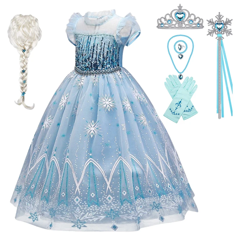 Новинка 2022 года; Платье принцессы платье с короткими рукавами и блестками для девочек платье для рождественской вечеринки на день рождения костюмы для девочек; Наряд для косплея