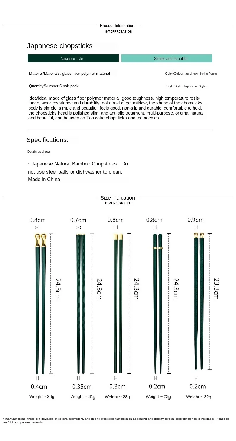 5 пар палочек для еды, высокое качество, Нескользящие палочки для еды, Корейская домашняя гостиничная посуда, суши, Ramen, карри, портативная палочка для еды, подарочный набор