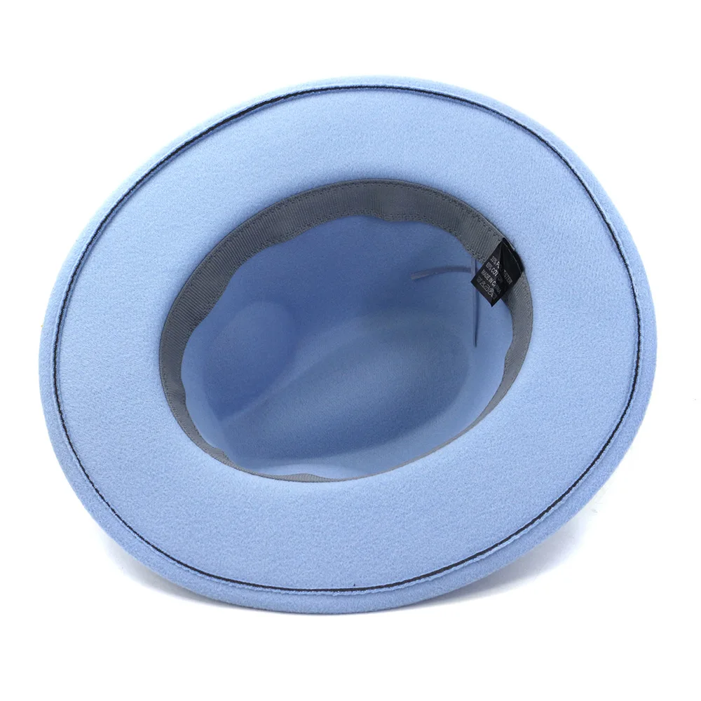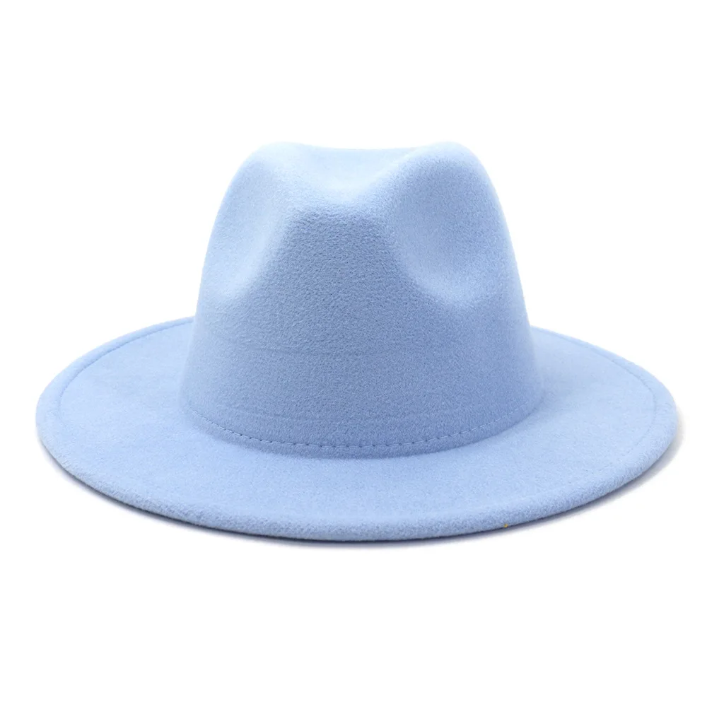 Шляпа Федора с широкими полями для мужчин и женщин, фетровая шляпа из искусственной шерсти, небесно-голубая, на осеньзиму, 2020