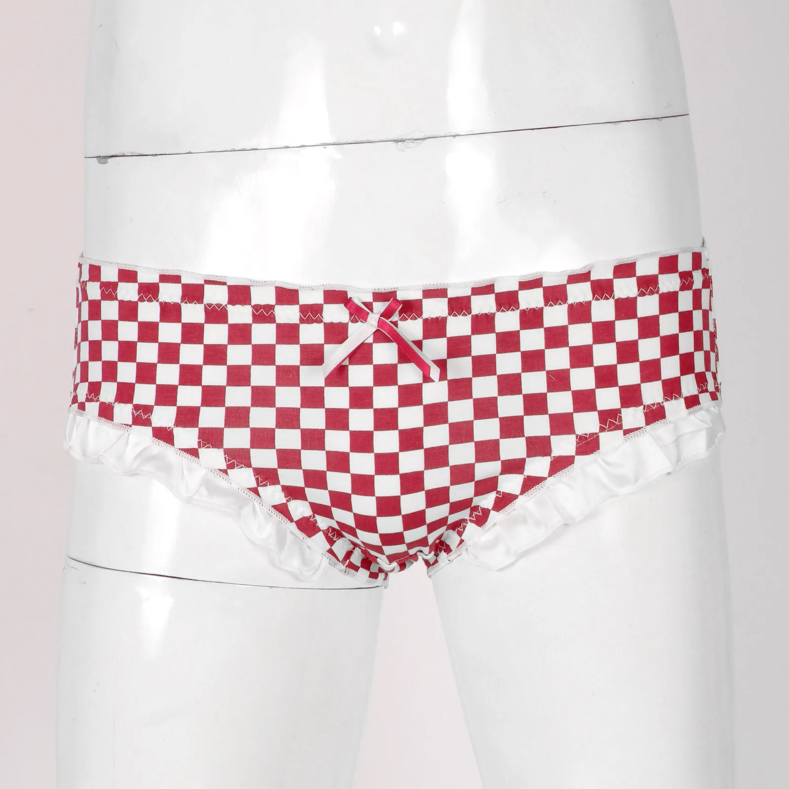 Трусы-брифы мужские в клетку, нижнее белье с оборками, с бантиком, с принтом в стиле геев, ночное белье