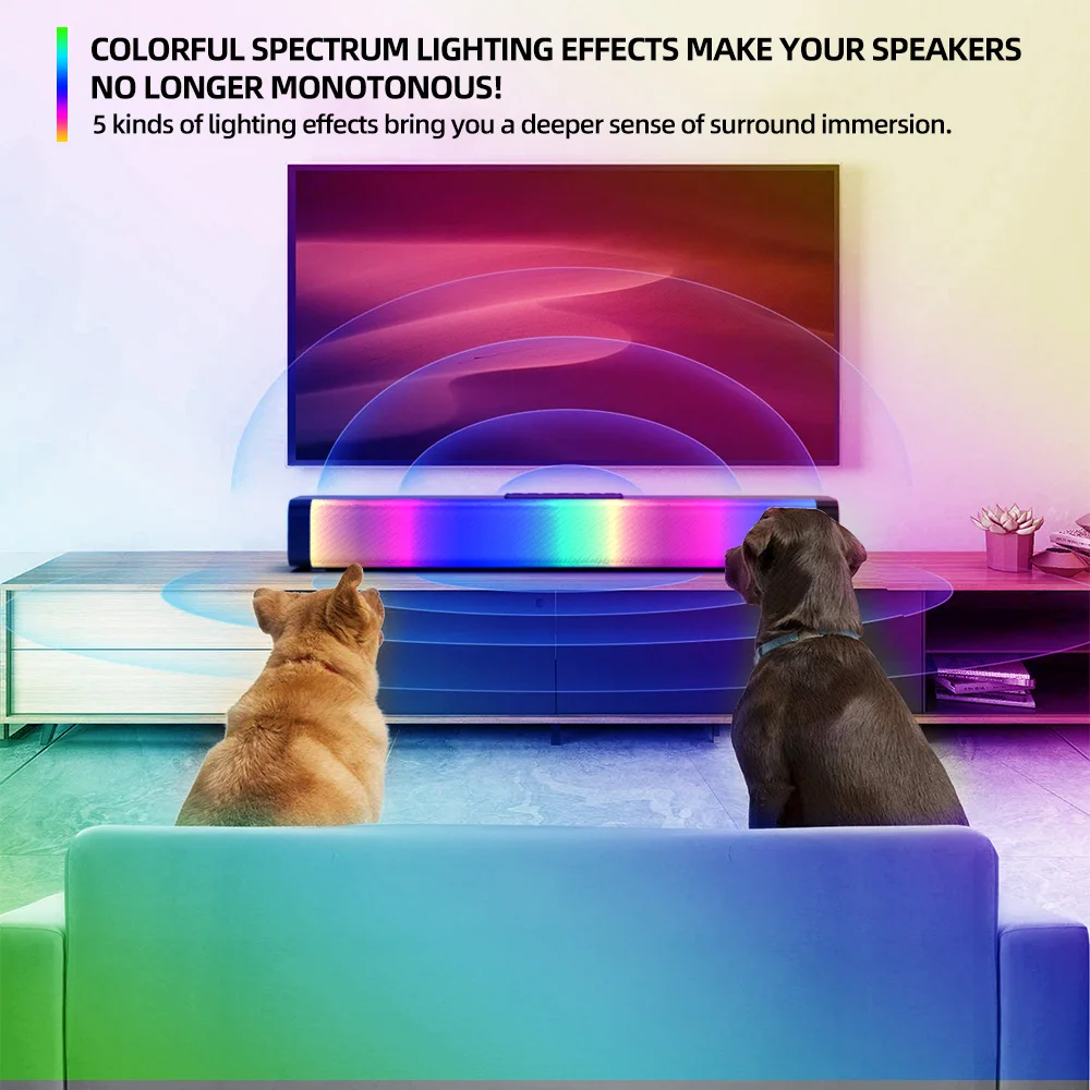 Светодиодный ТВ Саундбар RGB Супер бас беспроводной Bluetooth Настольный динамик HIFI стерео объемный с пультом дистанционного управления для ПК