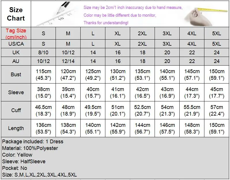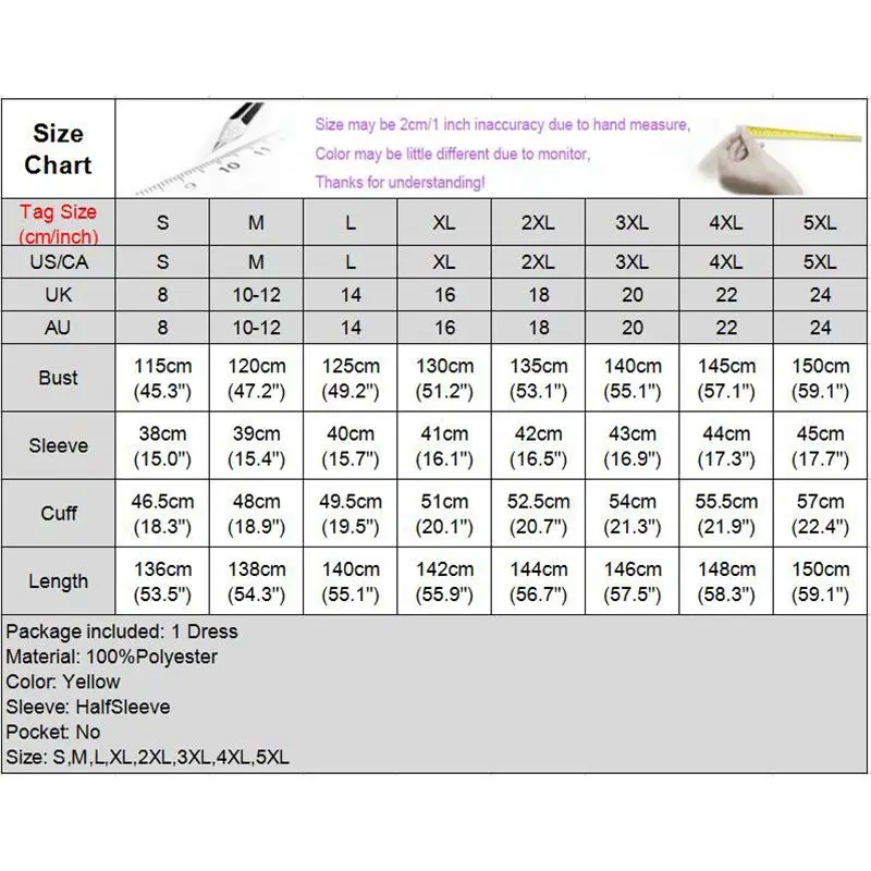Посылка включает в себя: 1 платьеМатериал: 100% полиэстерЦвет: желтыйРукав: полурукавКарман: нетРисунок: принтДлина: полная длинаОсобенности: плиссировка, рукав-пагодаСтиль: Отдых, праздник, Европа, повседневные, модныеСезон: весна, осеньПовод: вечерние, праздничные, уличные, рабочие, путешествия, встречи, свадебные, вечерниеВнимание:1. Перед покупкой, пожалуйста, проверьте размеры в таблице размеров!2. Размер может быть неточным на 2 см/1 дюйм из-за ручного измерения, цвет может немного отличаться из-за монитора, спасибо за понимание!3. Предложение холодной воды ручная стирка. Это может помочь предметам сохранить свою форму.