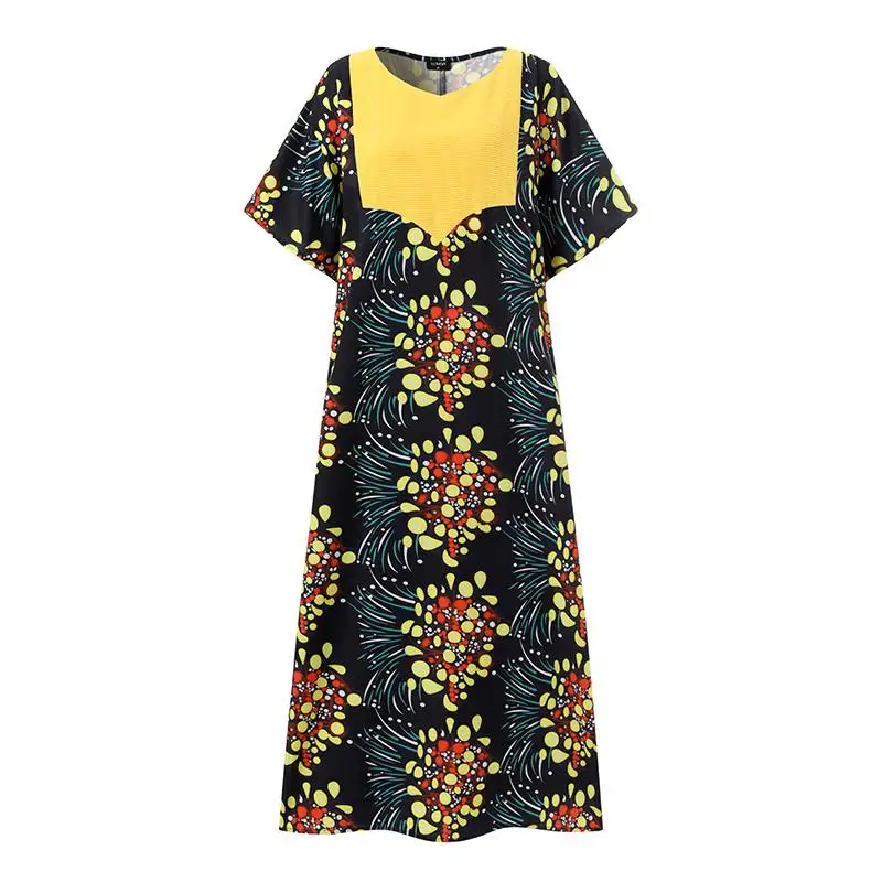 Свободный пляжный сарафан VONDA для женщин, повседневные винтажные наряды с коротким рукавом и принтом, вечернее платье оверсайз в стиле пэчворк, на осень