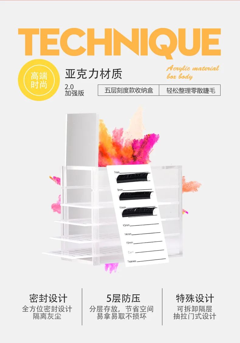 Долговечные материалы, прочные и стабильные.Подходит для хранения ресниц и инструментов.5-слойный дизайн, большая емкость и станет большим подспорьем при выполнении.Идеальный инструмент для профессиональных салонов красоты.