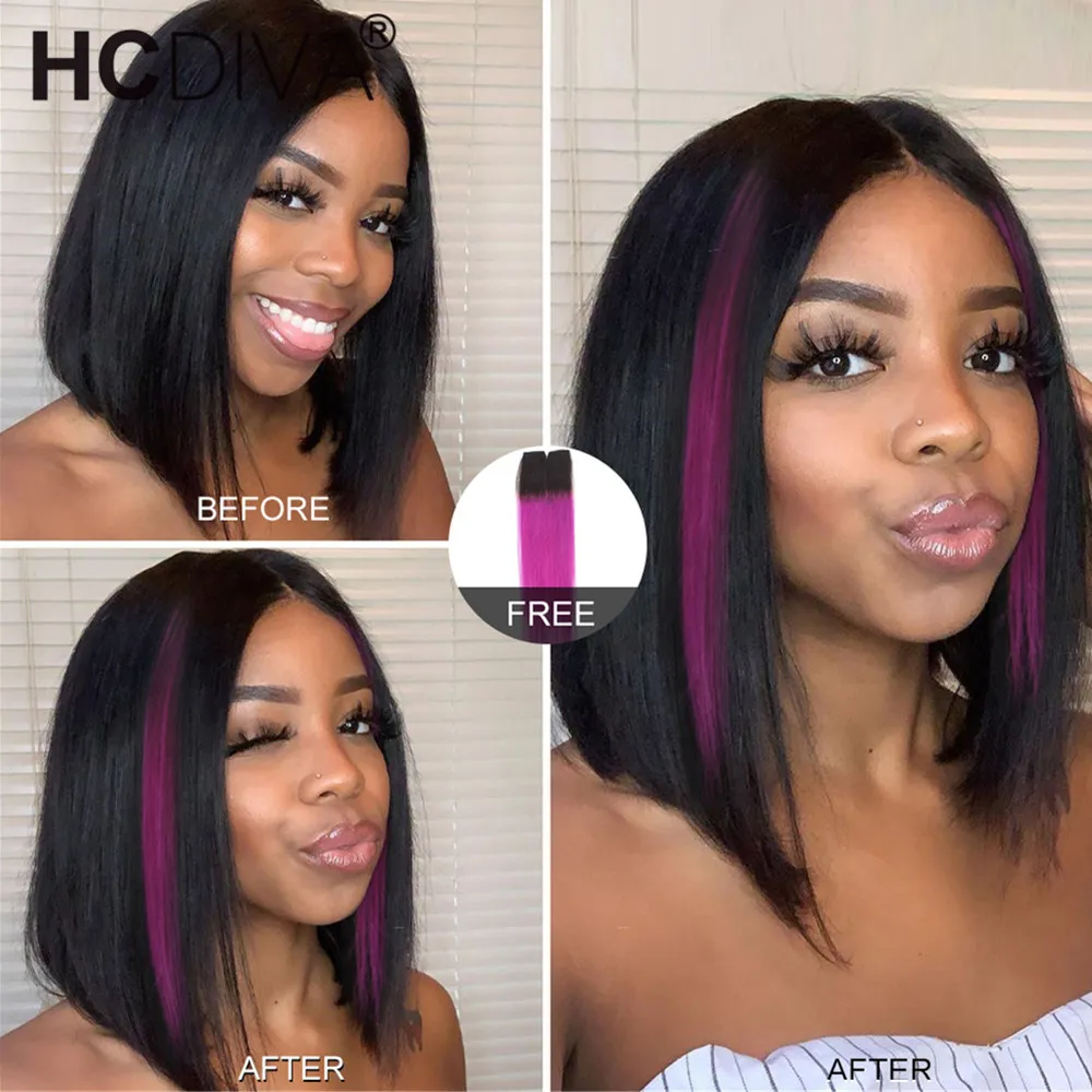 Хайлайтер Ombre боб парик перуанская прямая T часть Remy 4x4 парики...